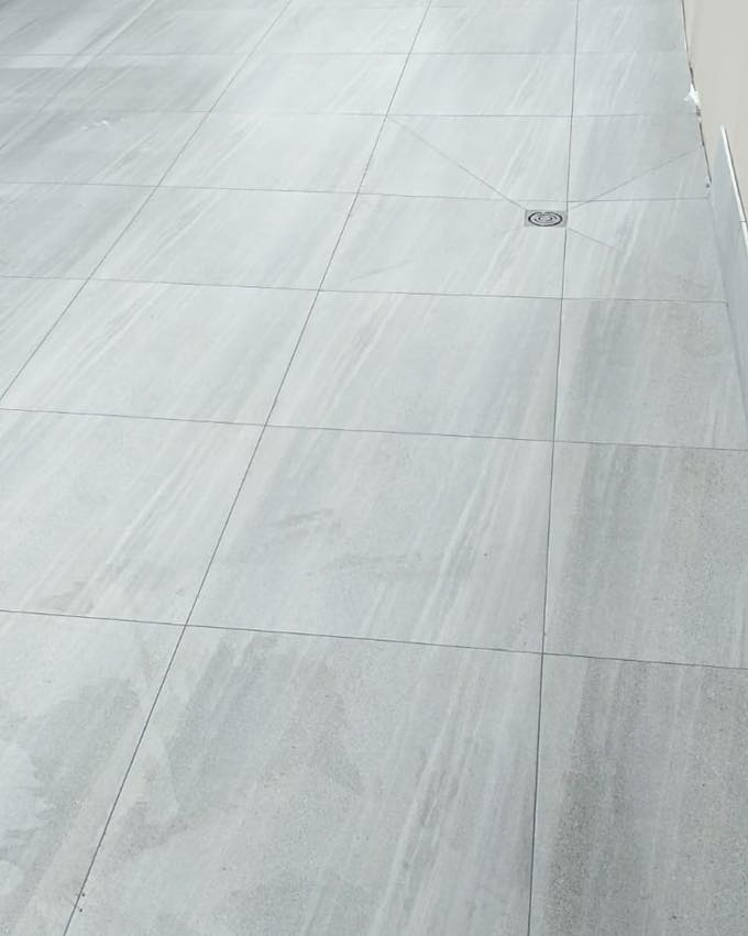 Porcelain can be given a smooth, honed or matte finish as well. This is done either at the time of manufacturing in the mold or after firing by grinding down the surface of the tile to a smooth finish. Matte finish tiles that are not ground down are identical to textured porcelain tiles in water resistance and stain resistance. They differ only in style, look and feel. Matte finish tiles that are ground down after firing may contain microscopic pin holes or pores only in the surface. These pores make the tile likely to collect surface dirt and require deeper cleaning. To prevent this, apply an impregnating sealer to the tiles prior to grouting and on a yearly basis.